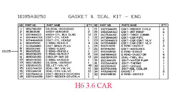 Genuine OEM Subaru Parts & Accessories - 10105ab250