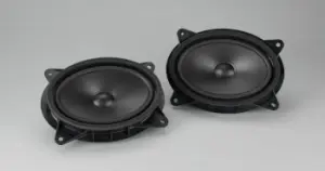Upgraded front door speakers feature a larger voice coil for increased power handling and a stiff polypropylene cone, resulting in enhanced sound clarity and impactful bass response. Manufactured for Subaru by Rockford Fosgate.